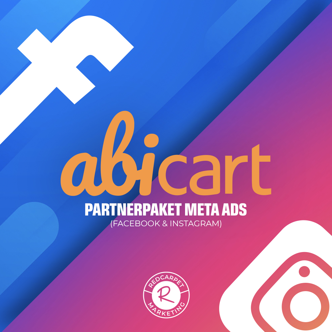 Together with our friends at the digital marketing agency Redcarpet, there is now a great offer to get started with Meta Ads or develop them further if you are already up and running. Graphics, account management and ad optimisation included. Of course, as an Abicart customer, you get an exclusive discounted price.