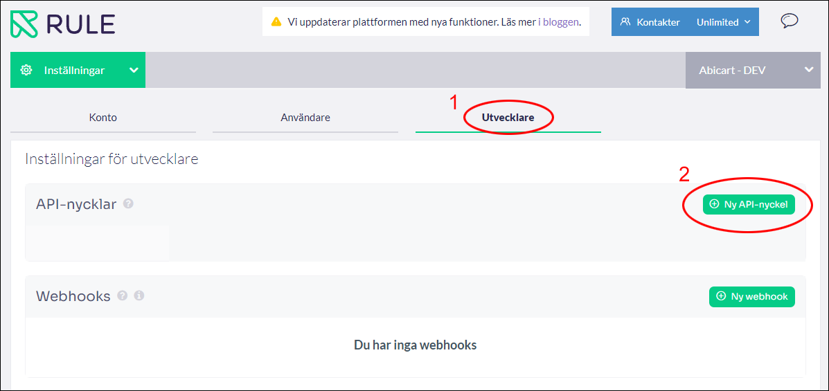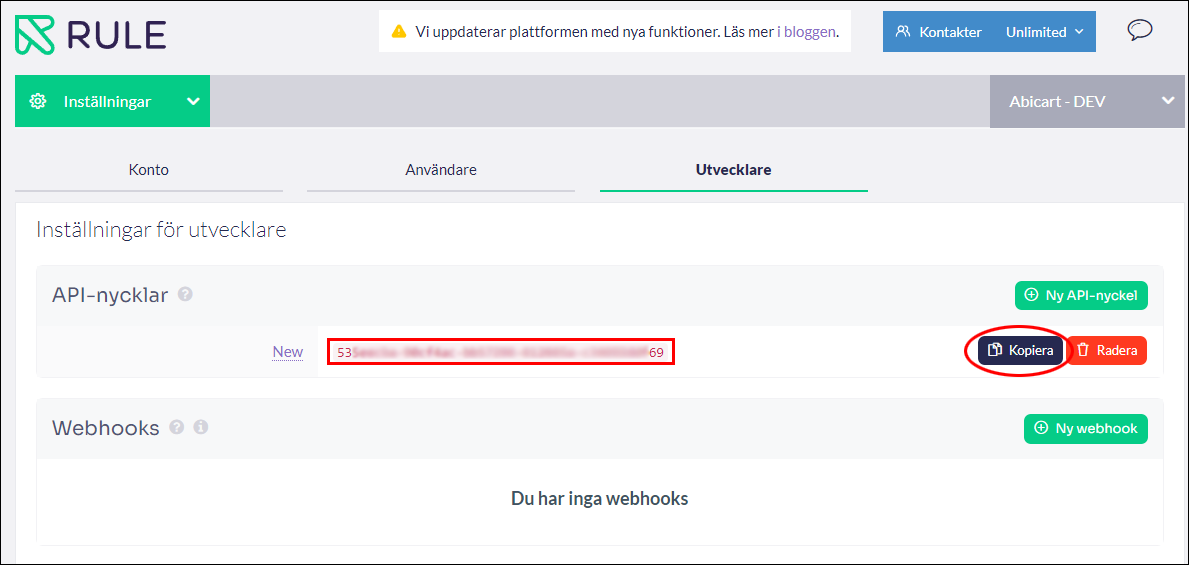 Erstellen und Abrufen von API-Daten auf Rule.se