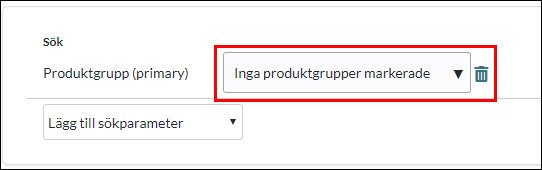 Zuerst suchen Sie nach den Produkten, für die Sie einen Aufpreis festlegen möchten. Um nach allen Produkten einer bestimmten Produktgruppe zu suchen, fügen Sie einen Suchparameter namens "Produktgruppe (primär)" hinzu.