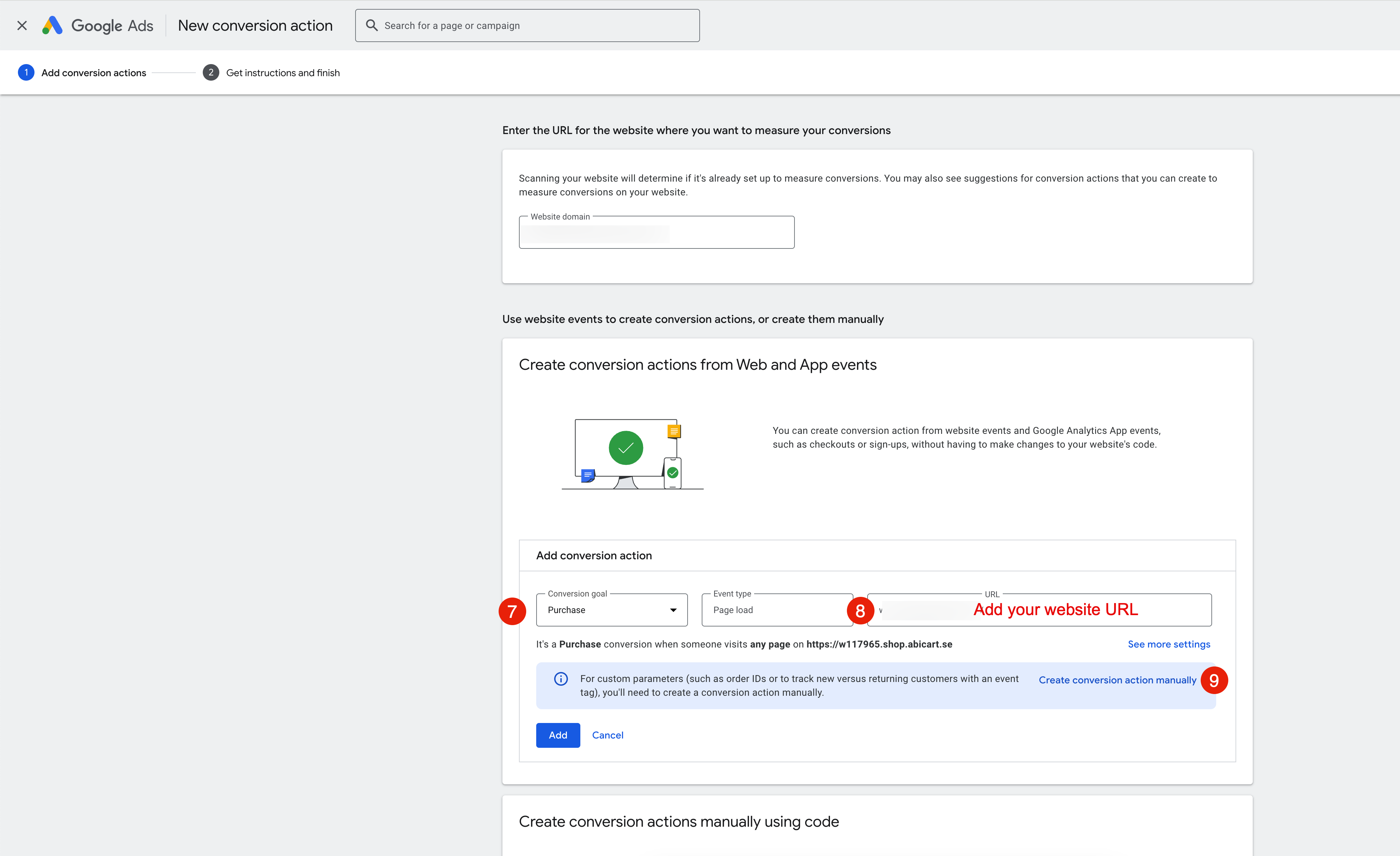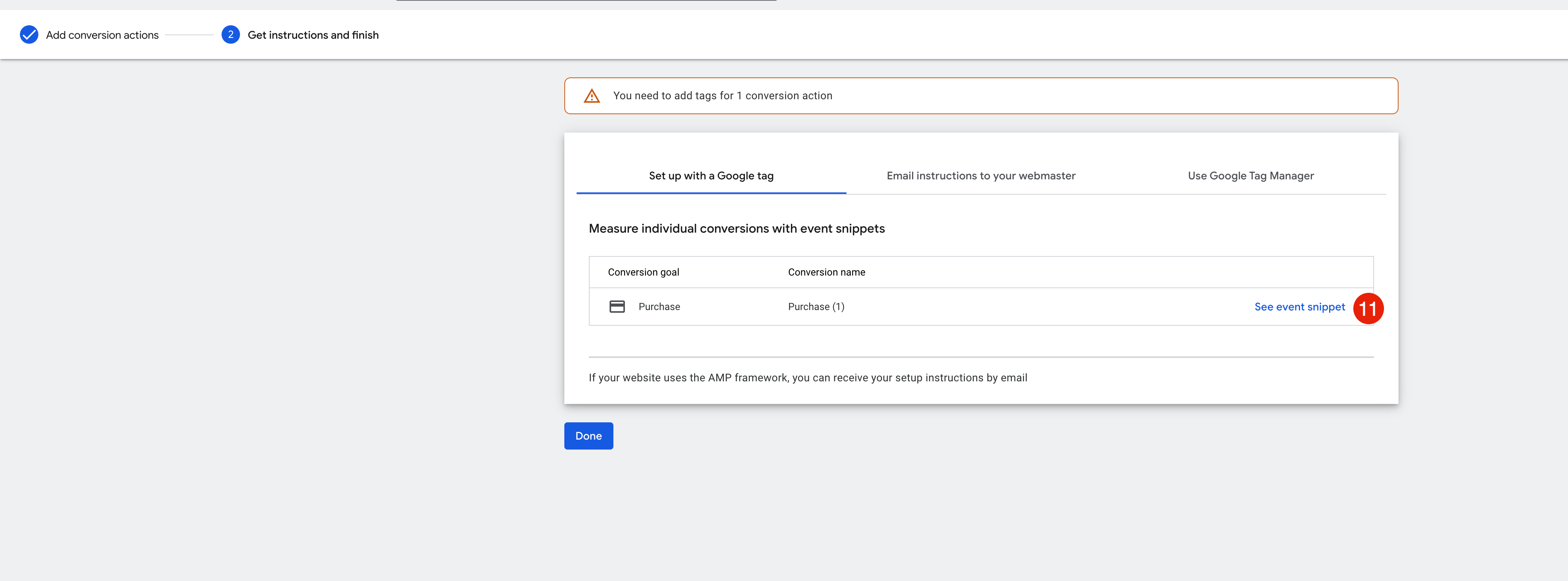 Um zu verstehen, wie gut Ihre Google Ads-Kampagnen funktionieren, müssen Sie sie mit Ihrer Website verknüpfen. Mit dem Conversion-Tracking können Sie verfolgen, welche Aktionen der Käufer auf Ihrer Website durchführt, nachdem er auf Ihre Anzeige geklickt hat.