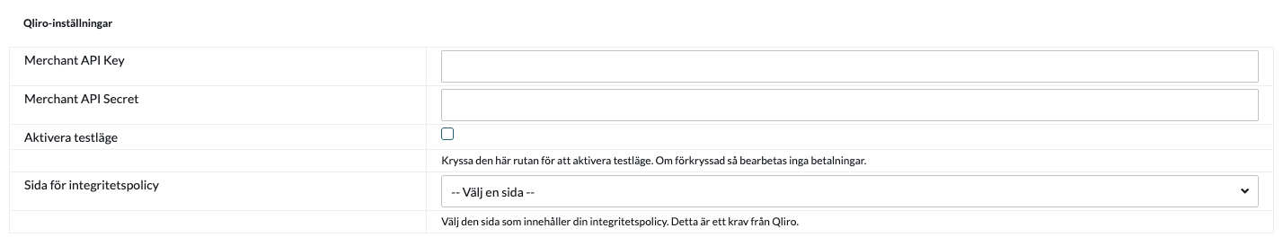 Qliro-Einstellungen