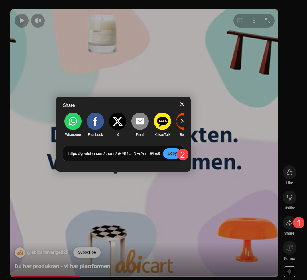 Der Link, den Sie erhalten, sieht wie folgt aus: https://youtube.com/shorts/exempelvideo