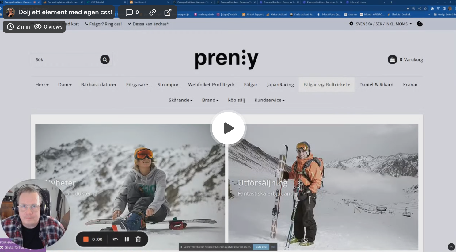 Kurzfilm (Schwedisch): Ein Element auf einer Abicart-Seite mit benutzerdefiniertem Css ausblenden - Textalk Abicart