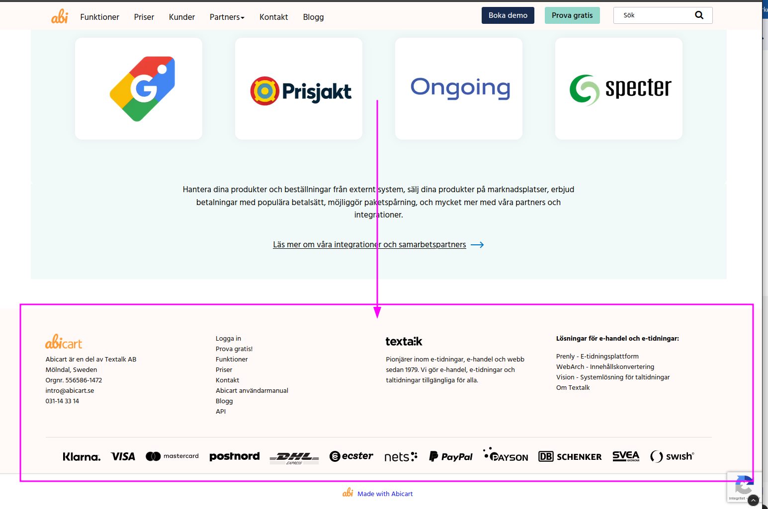 If you use Klarna Checkout as your payment method, you can activate a logo in the footer for Klarna. This can be done in the rightmost field.