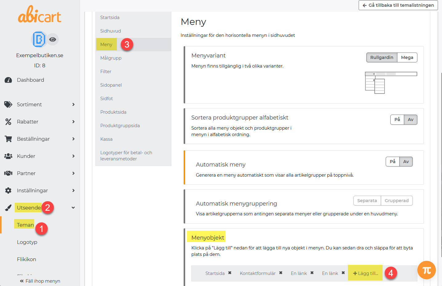 In "Automatic menu OFF", menu items are added manually under Appearance >> Themes.