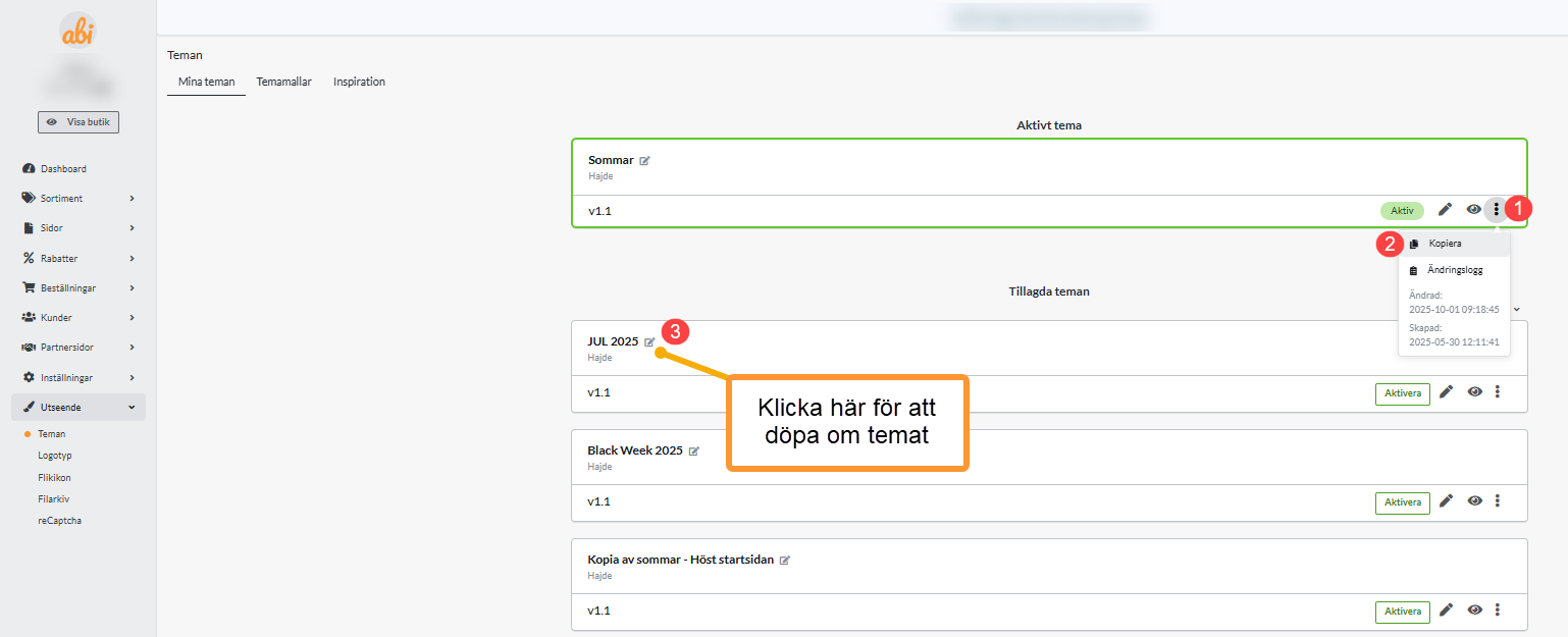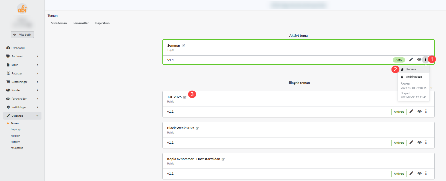 You can create copies of a theme. Perfect if you want to experiment, or if you want to haveseasonal themes.