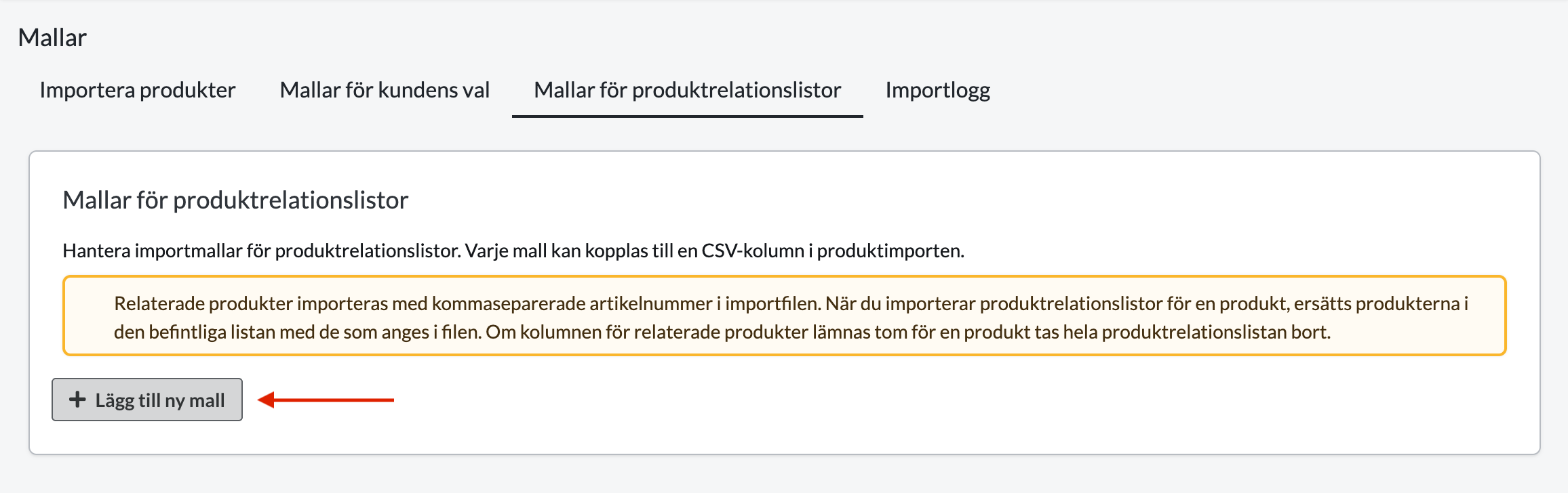 Product import allows you to add related products to your store via an import file. The feature uses so-called product relationship lists, where you specify related products on a specific product.