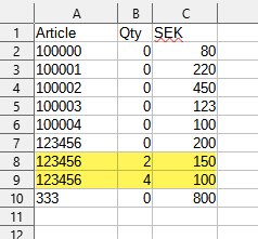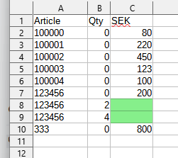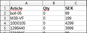If something is wrong, for example if there are two items with the same product number or if the product number does not exist, this will be shown in the box.