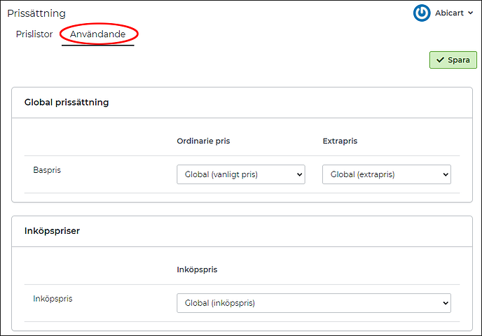 If you use customer groups, you can easily set which price list each customer group should use. These are shown under the block with "Global pricing".