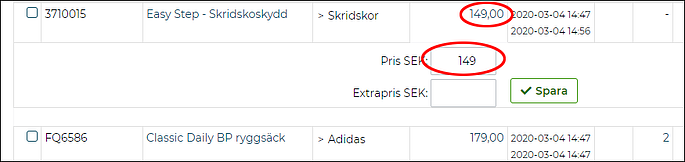 In the example above, we have three price lists linked in the store. Regular price, extra price and purchase price.