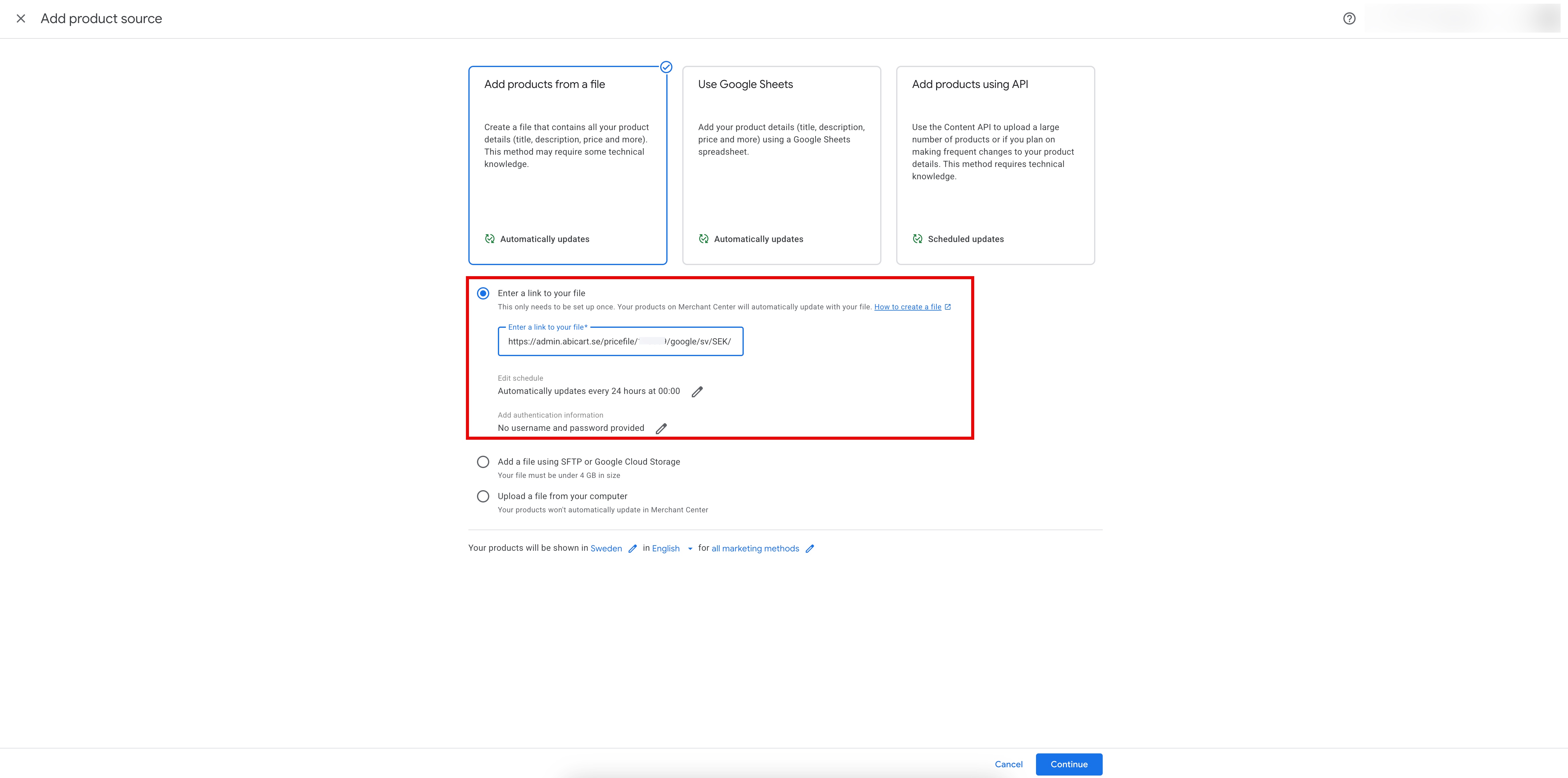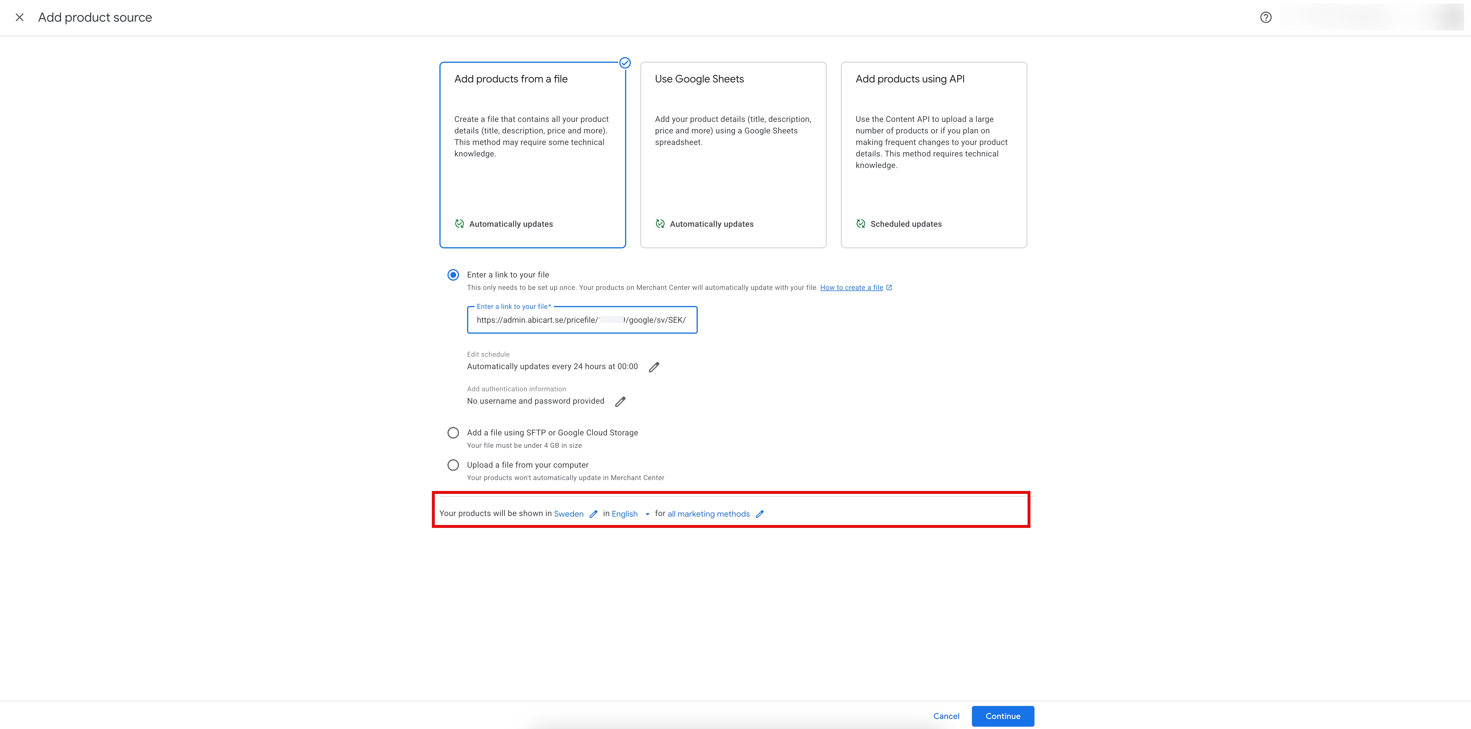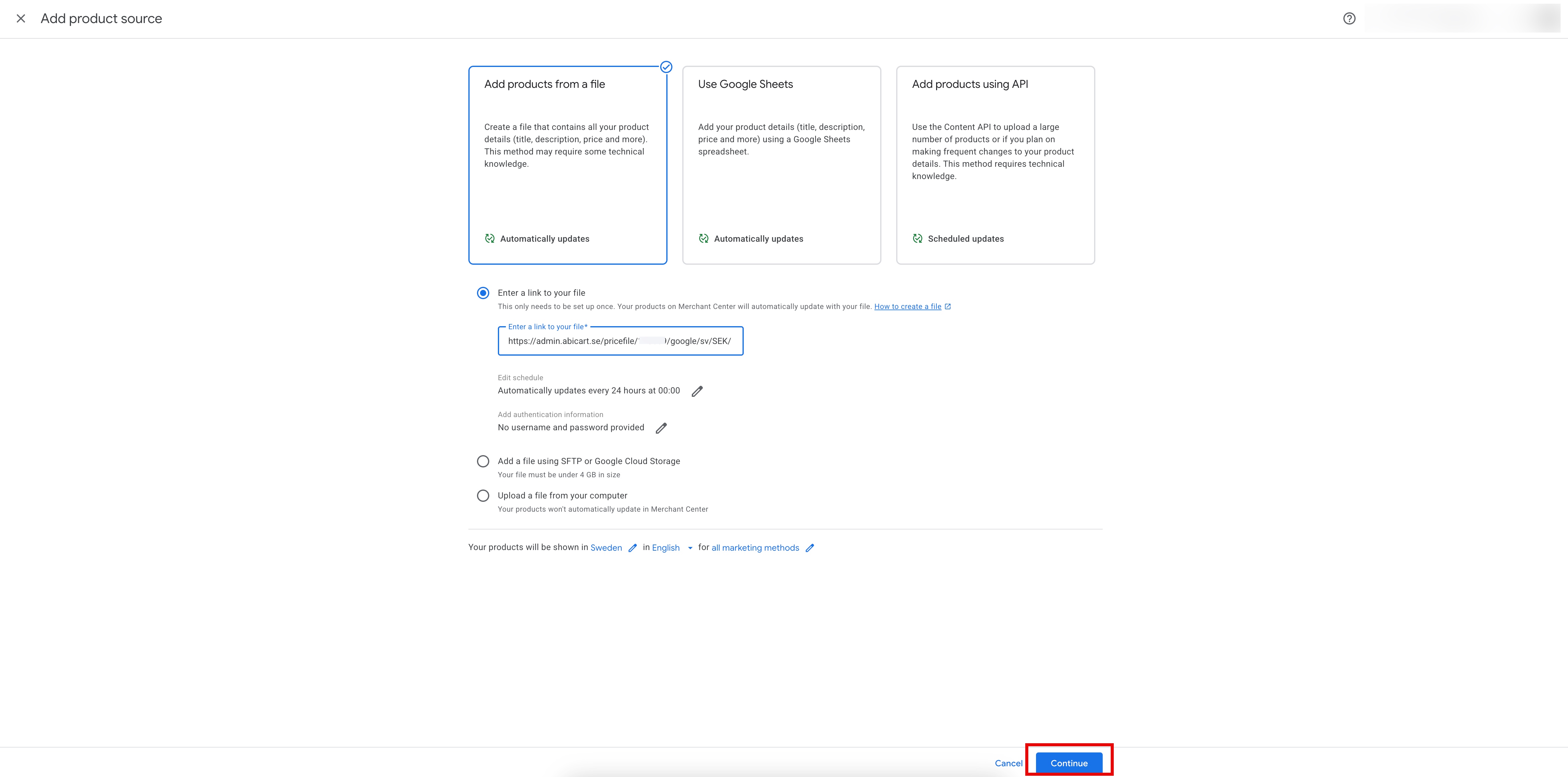 - Add the scheduled feed to your Google Merchant Center account