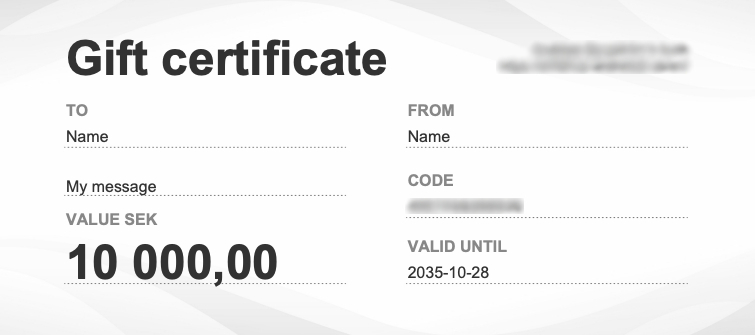 Enter a validity period for how long the gift card should be active. In Sweden, the most common validity period is set to 10 years, but the store owner can choose this themselves.