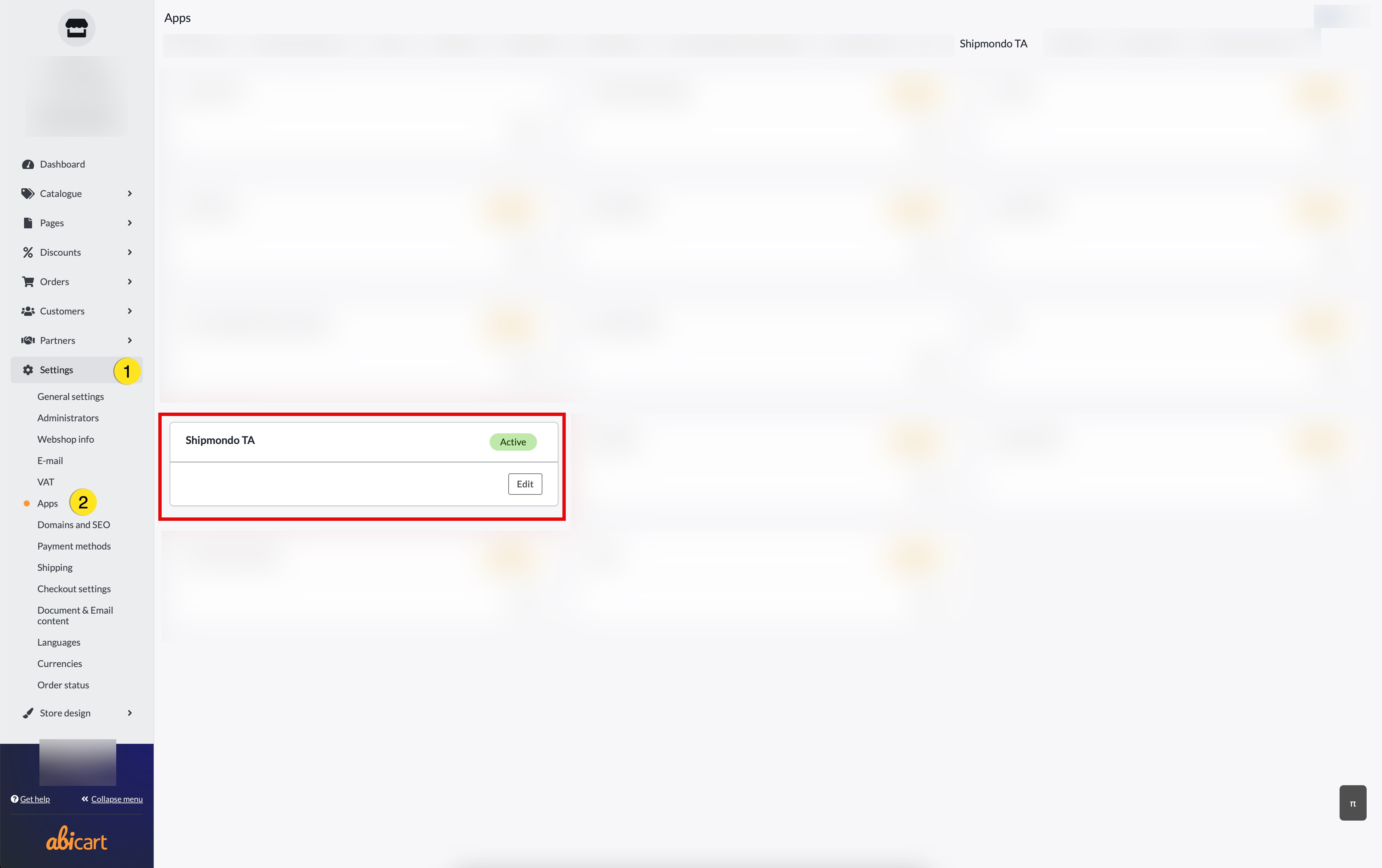 In Abicart, go to Settings → External Connection → Shipmondo TA.
