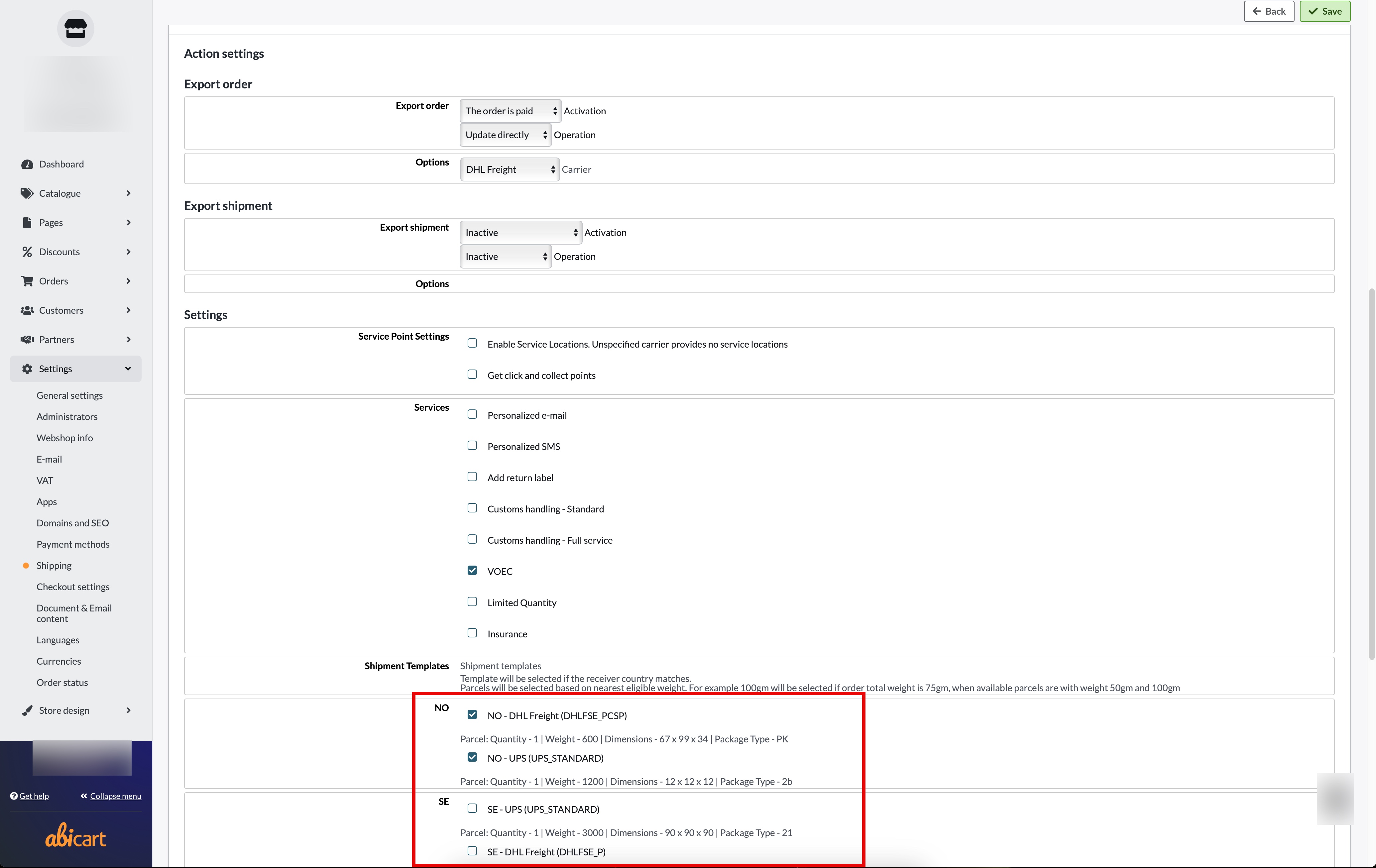 Shipping Templates: Abicart & Shipmondo Integration