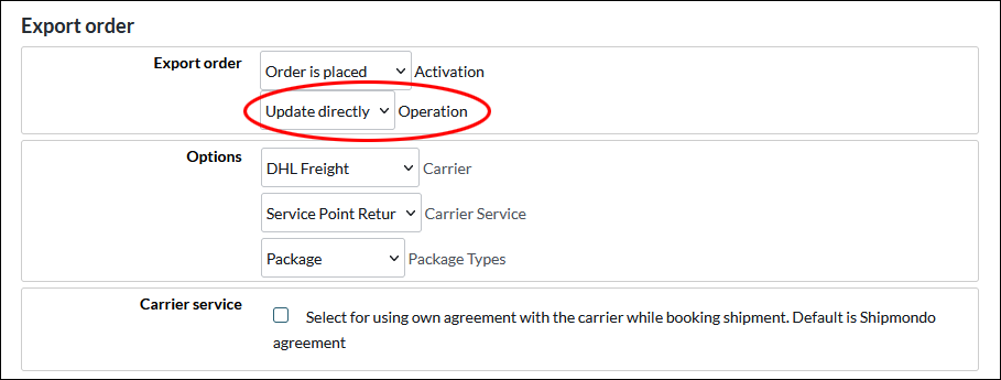 Here you can choose to export the entire order (Export order) or divide each order into different shipments (Export shipment). If you do not use partial delivery or do not know which one to use, we recommend choosing "Export order". You should not have both active at the same time.