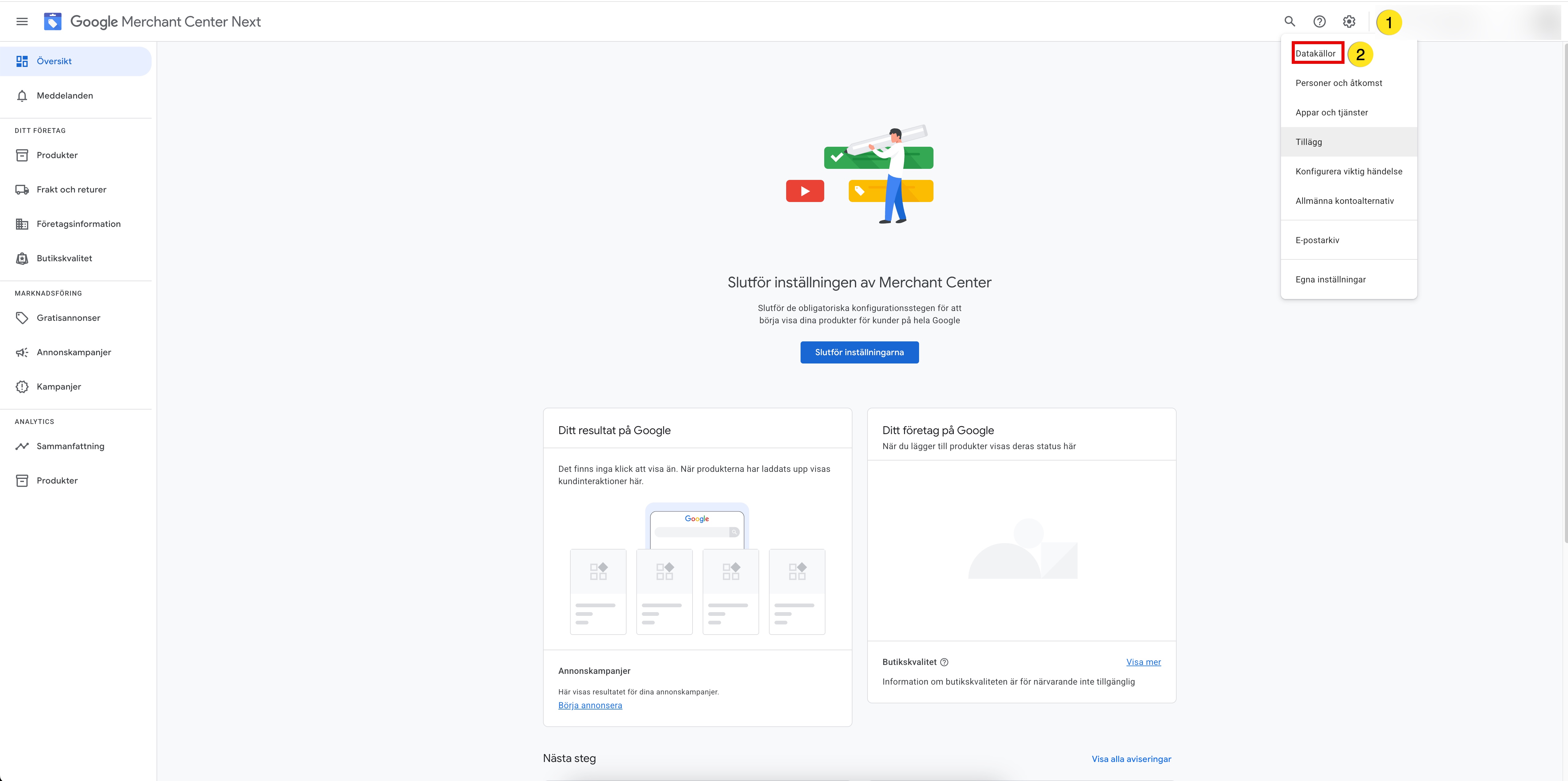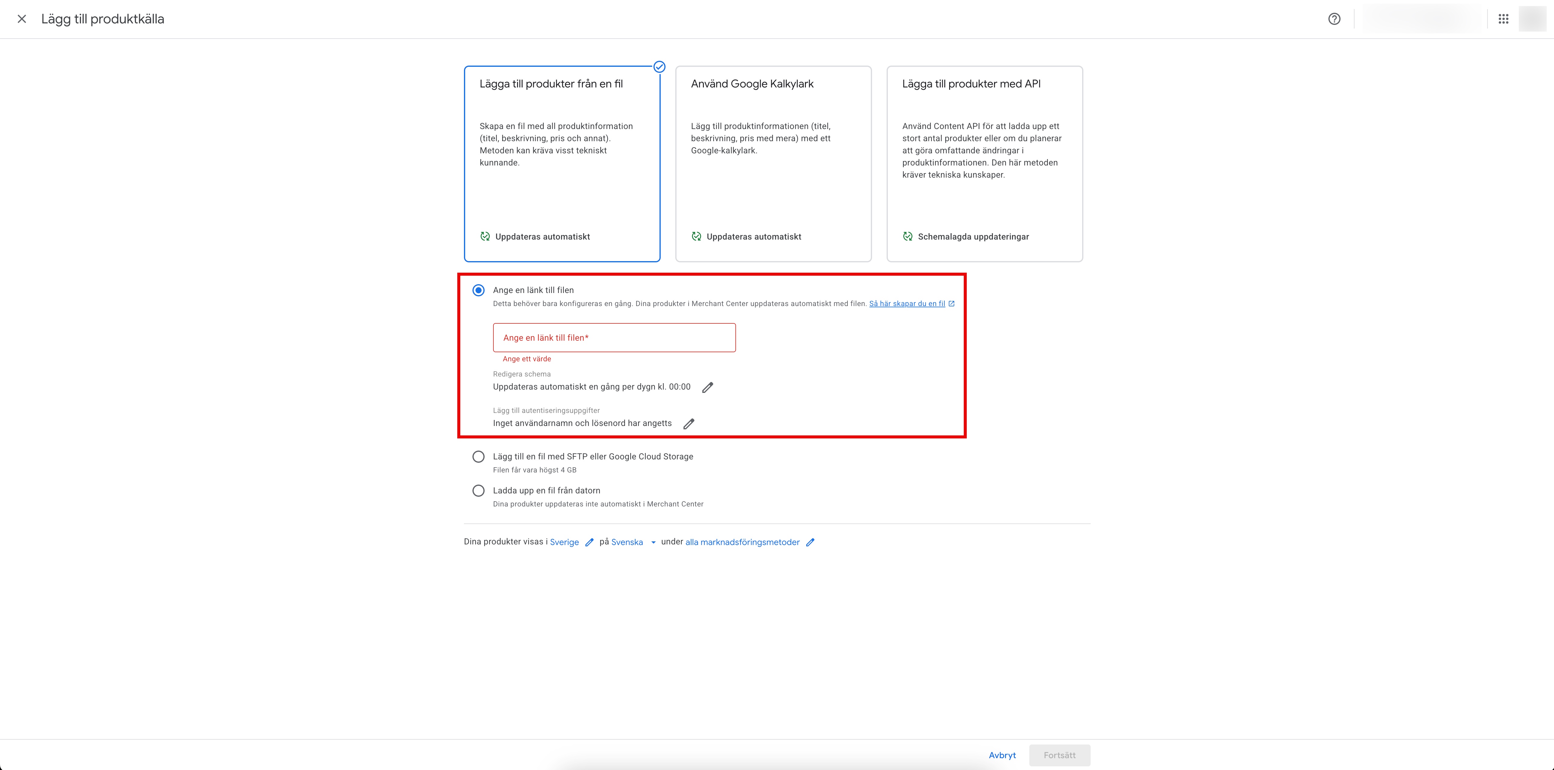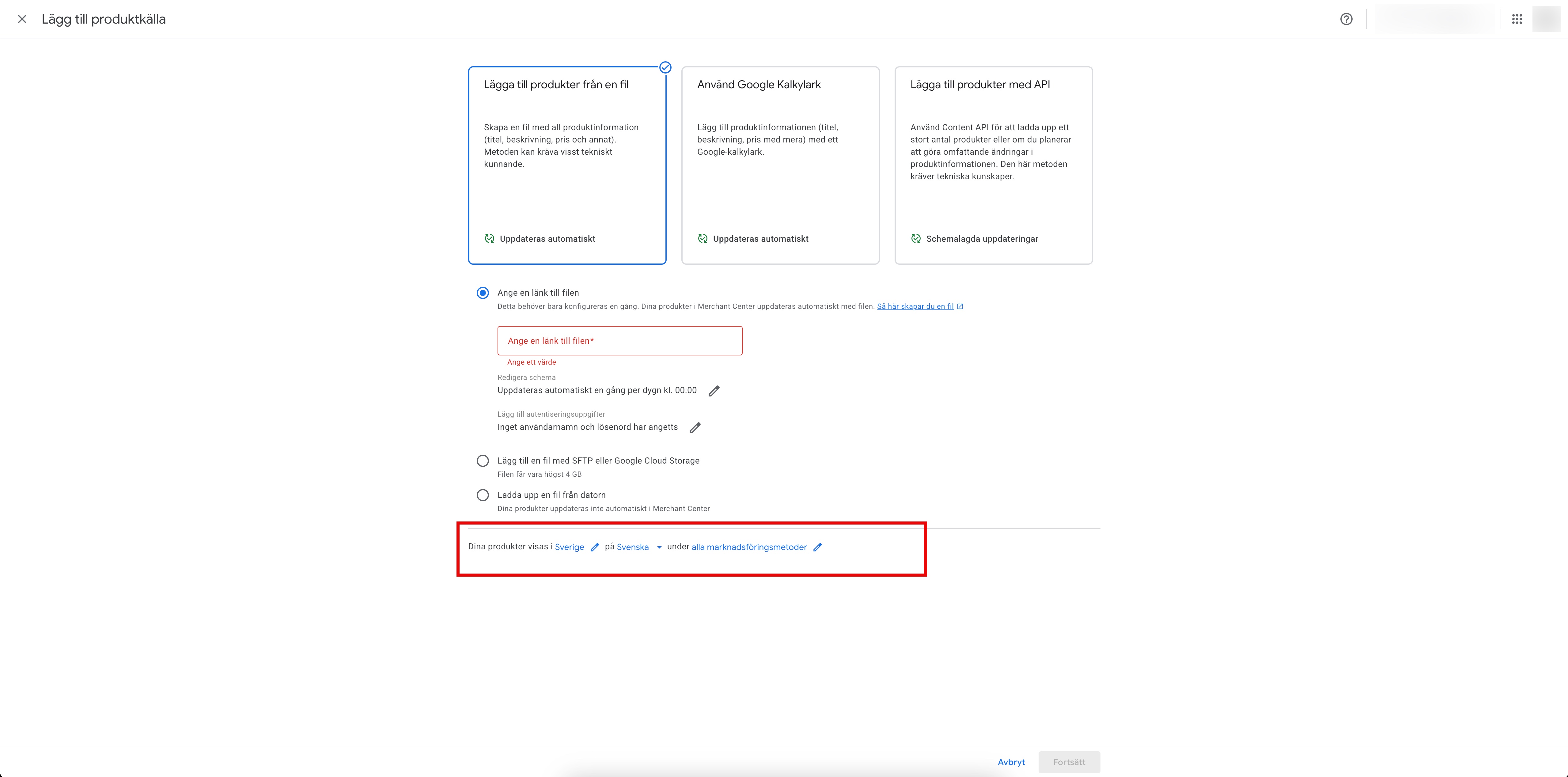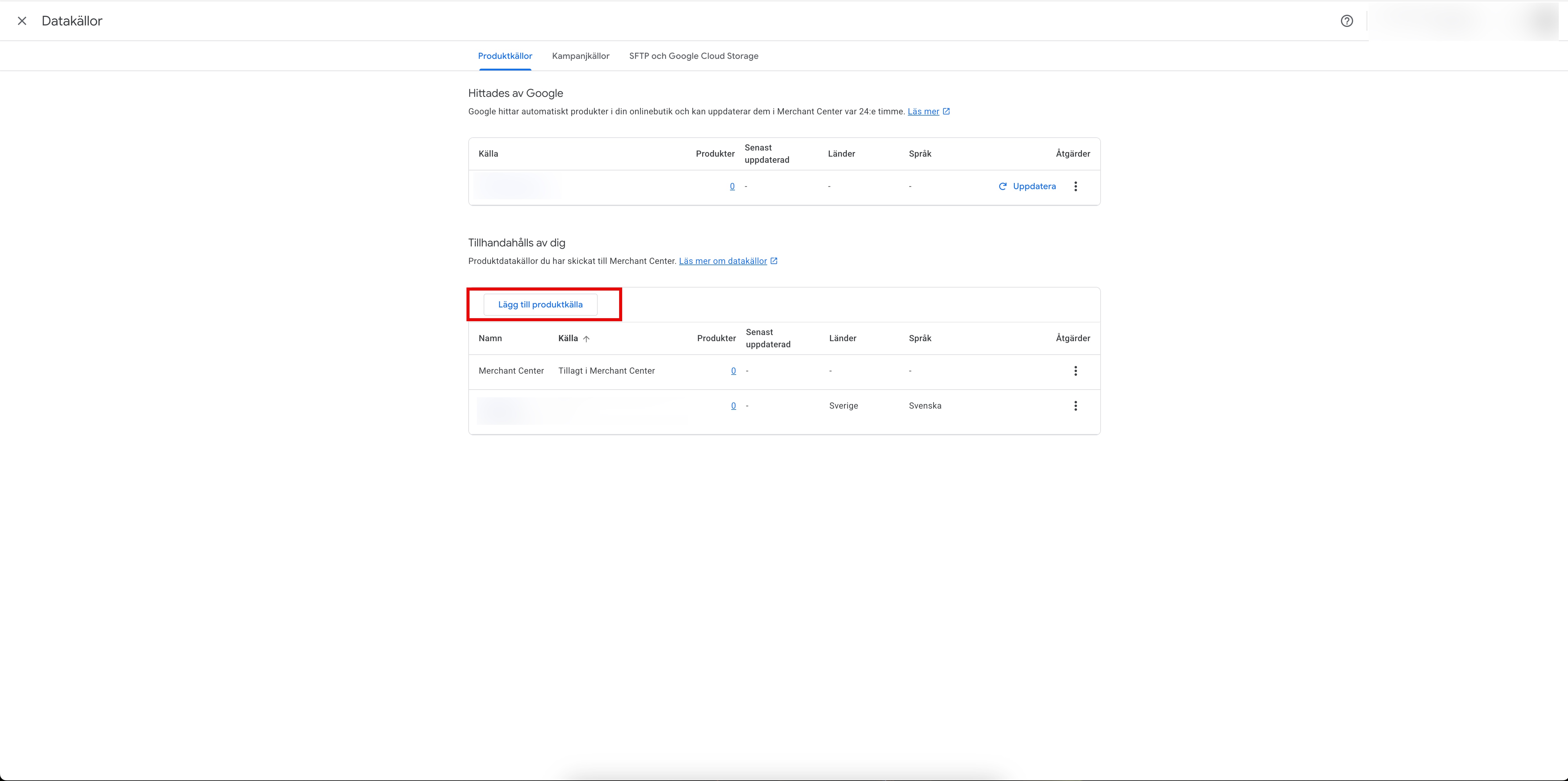 Steg 2: Lägg till Feedet i Google Merchant Center