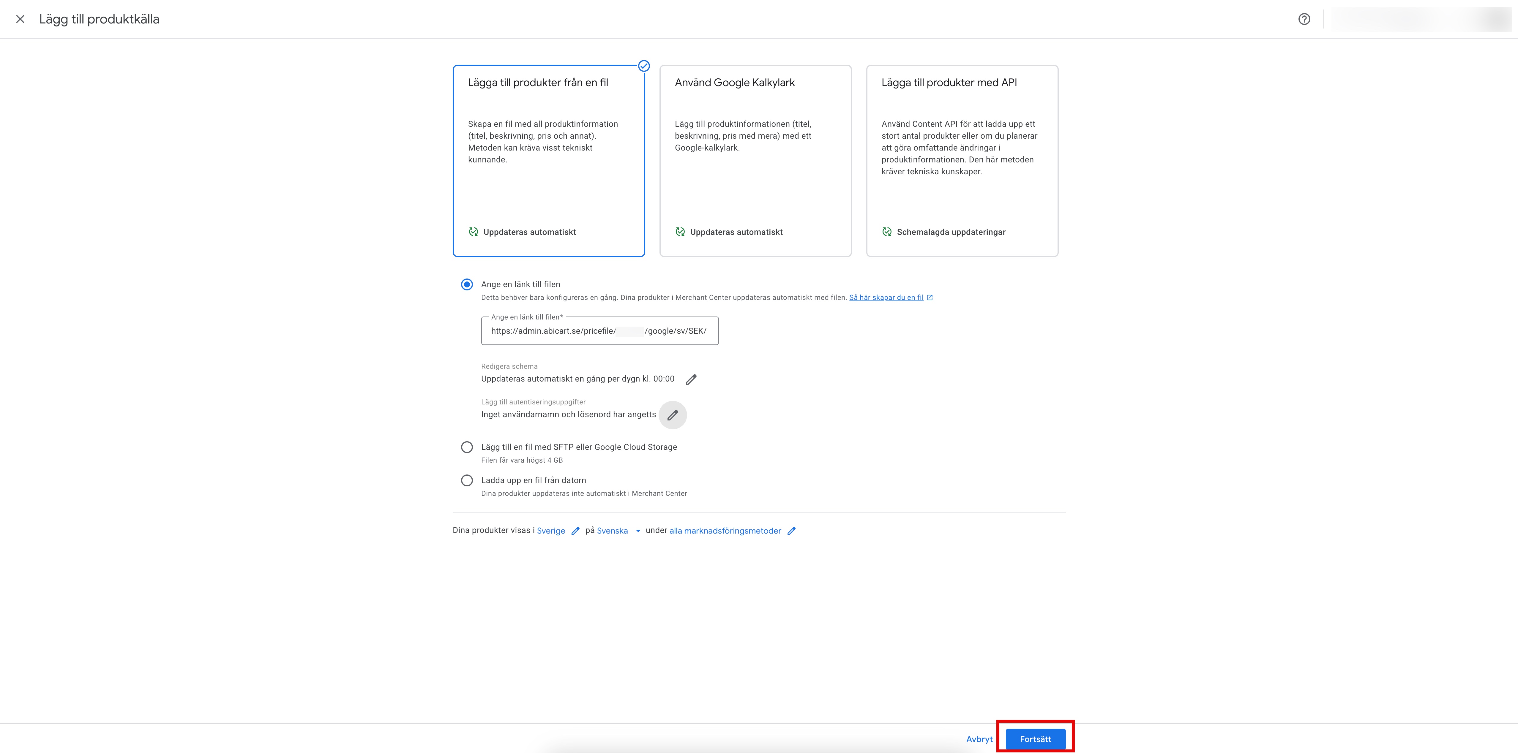 - Lägg till det schemalagda feedet i ditt Google Merchant Center-konto