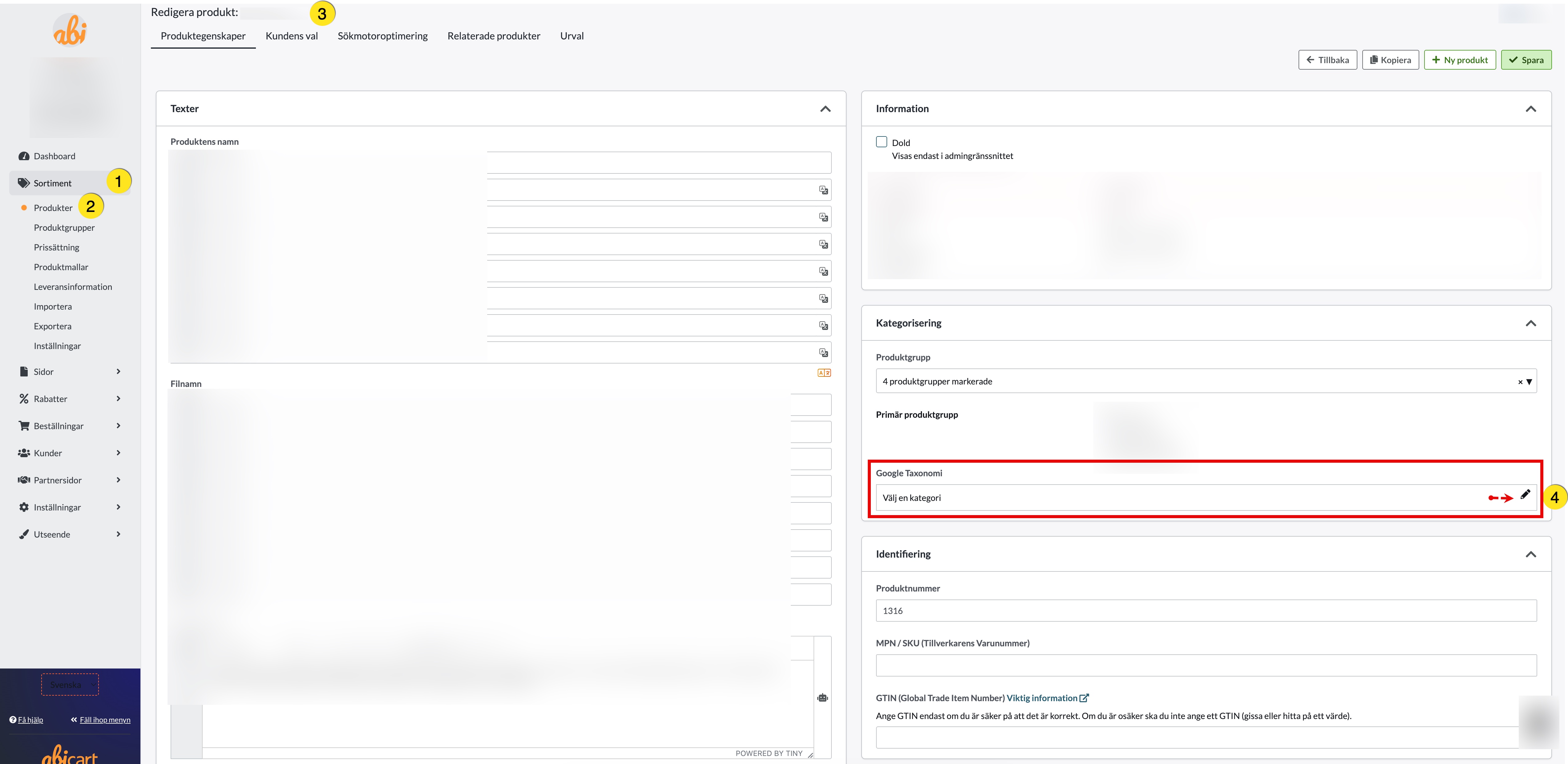 Hur du lägger till eller uppdaterar Google Taxonomy i Abicart