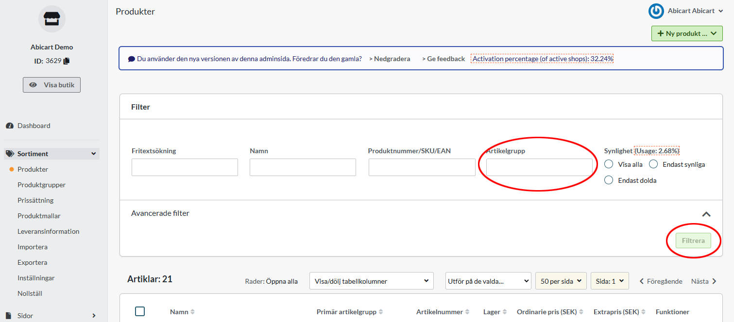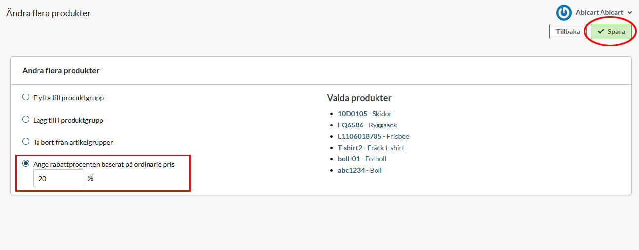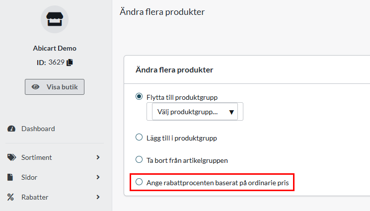 Ange procentuellt extrapris på flera produkter samtidigt - Textalk Abicart