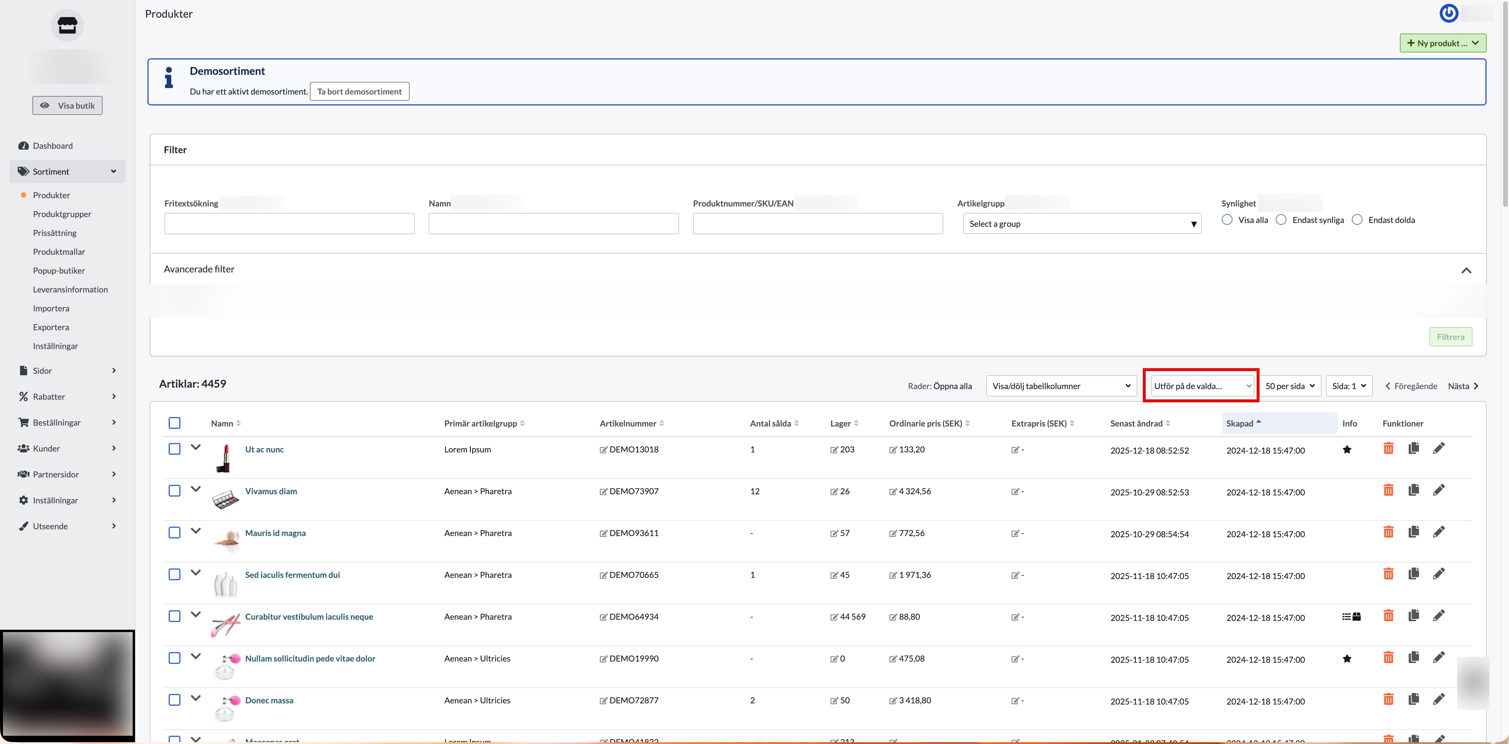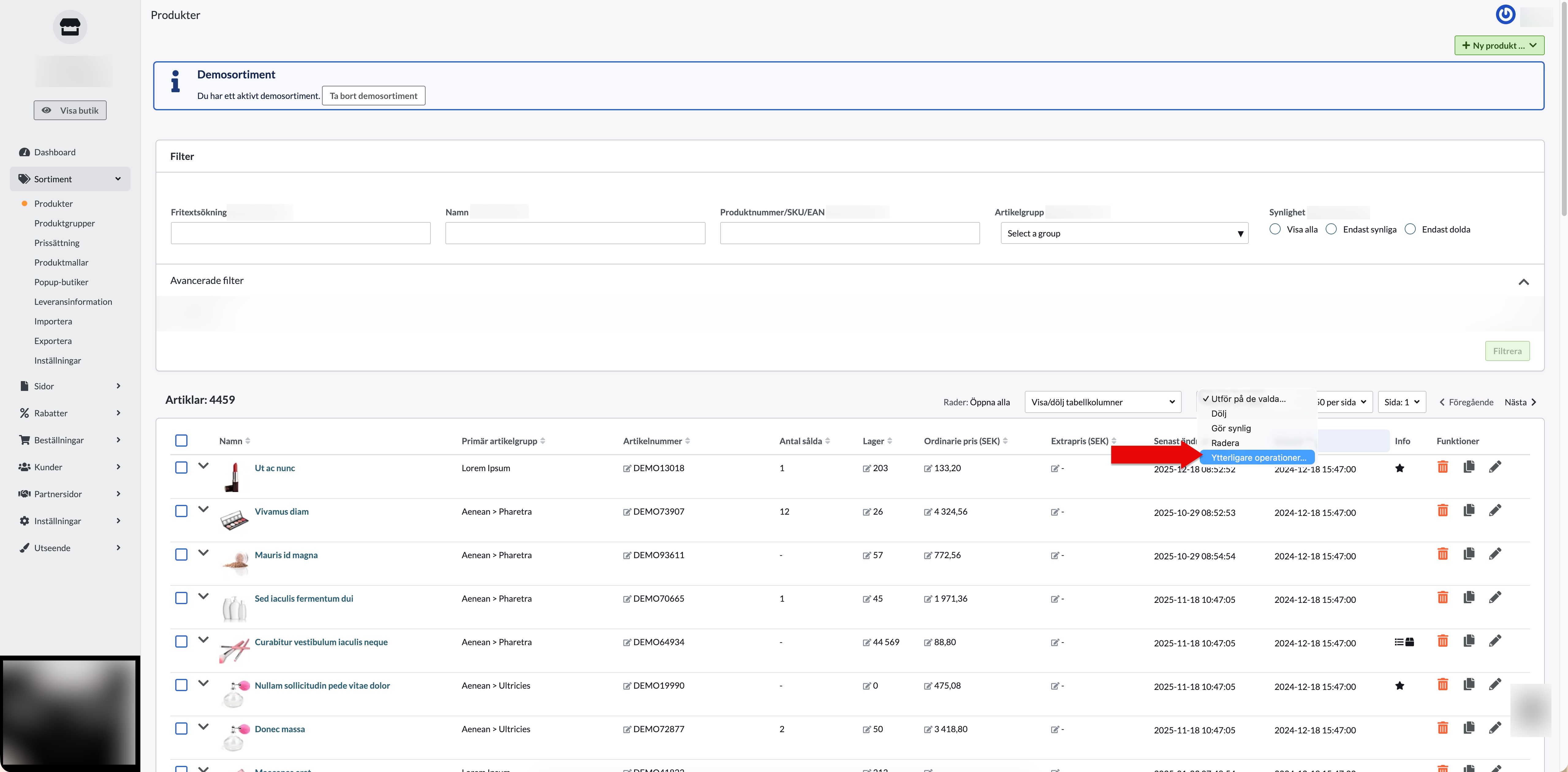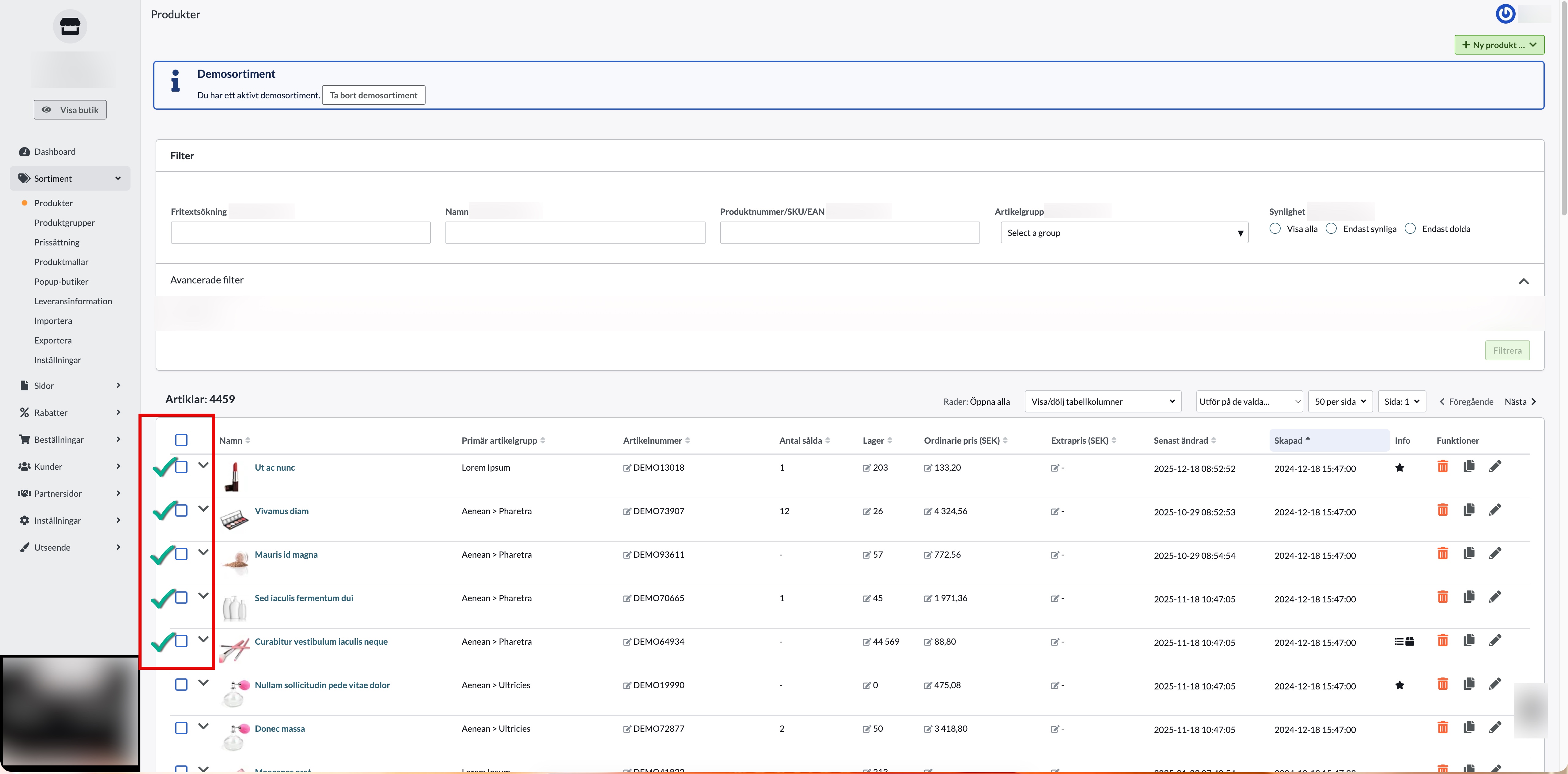 - Gå till Sortiment → Produkter.