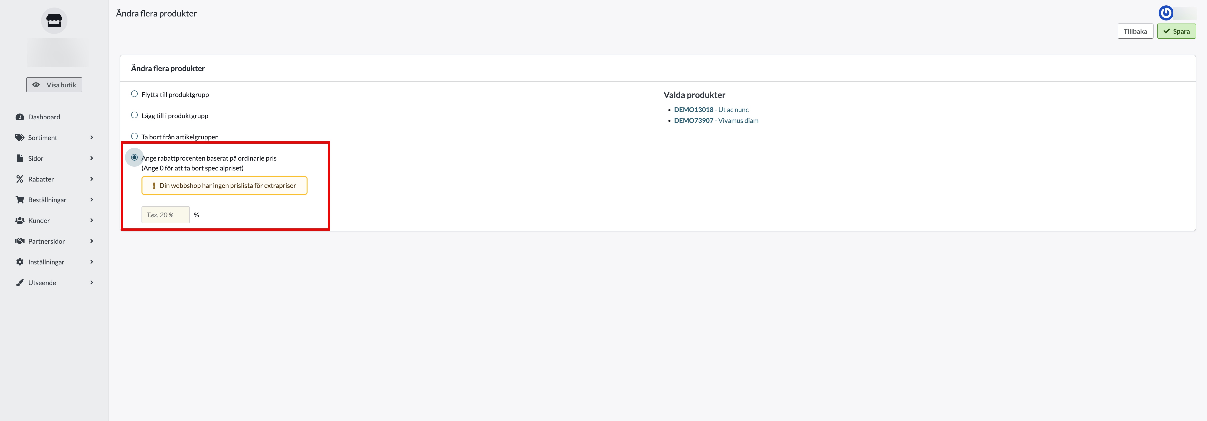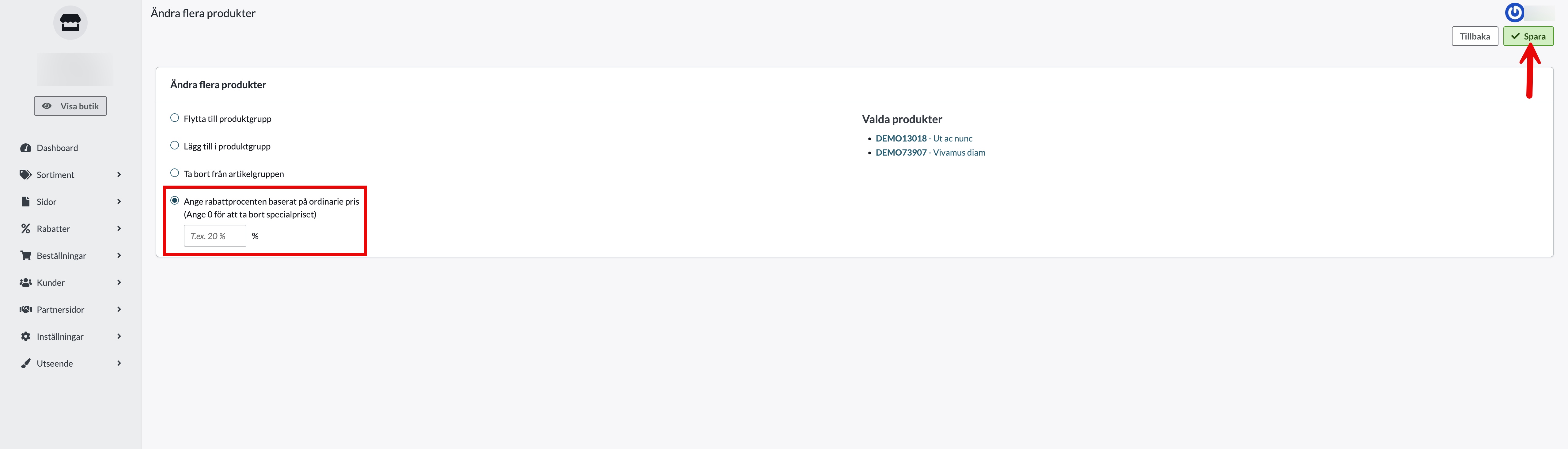 - Markera de produkter du vill rabattera.